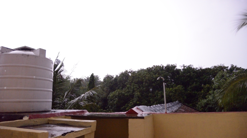 I opened the UPS/generator room to keep the camera and focus outside. As the lightning flash was not continuous couldn’t see anything inside the room. Got scared if any insects would be there. So took the camera again and got down (if I leave the camera there, it may fall due to wind). My CAMERA is “precious” than anything now. 🙂