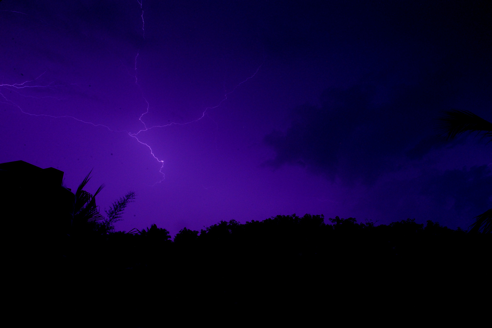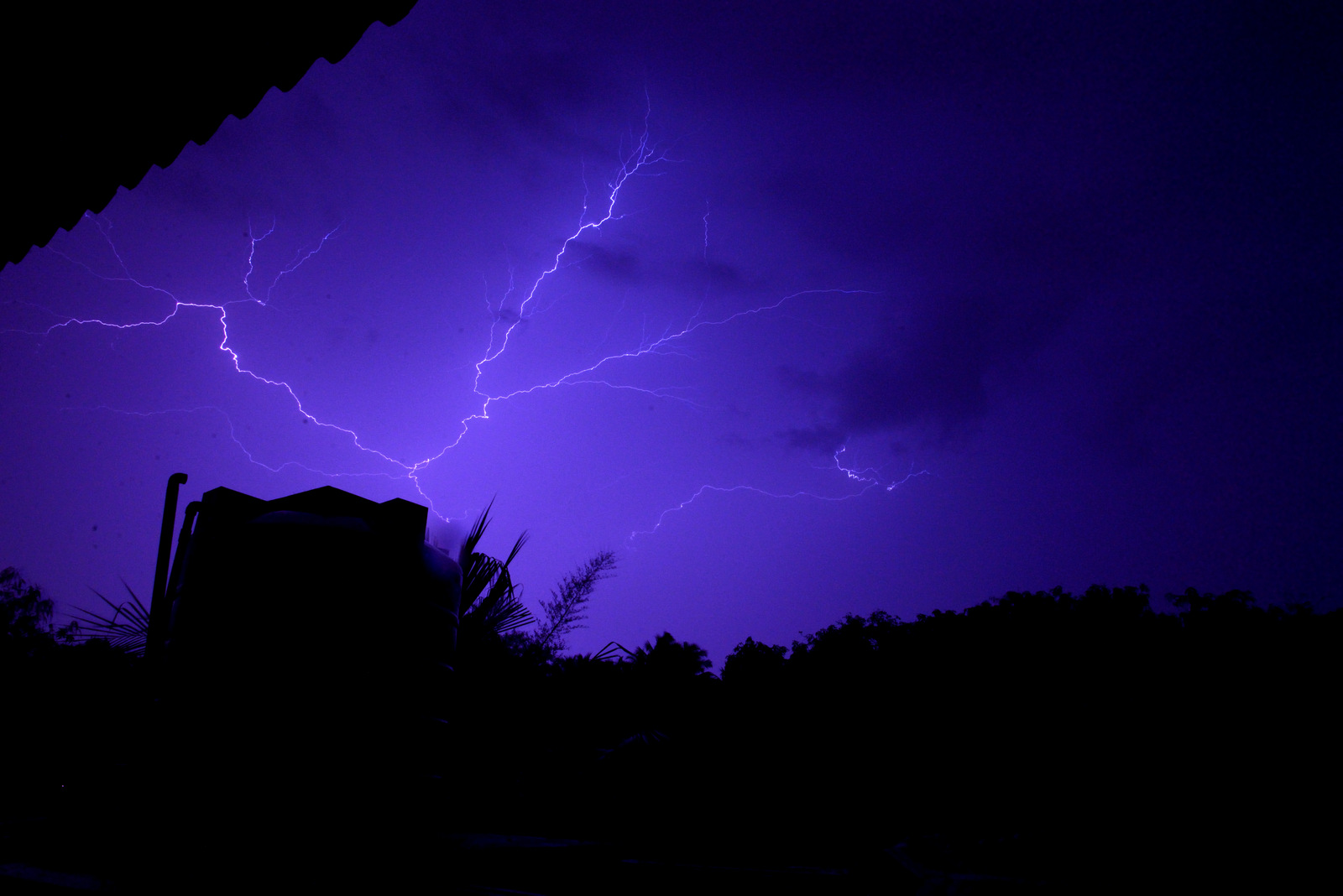 Sometimes, there will be plenty of light in the sky without a visible lightning. Another big spoiler for my photos were b’cos of rain. Water were spilling all over and my camera lens was full of dots. You could see lot of dirt like effects on the photos. There are some water droplets also from the roof.