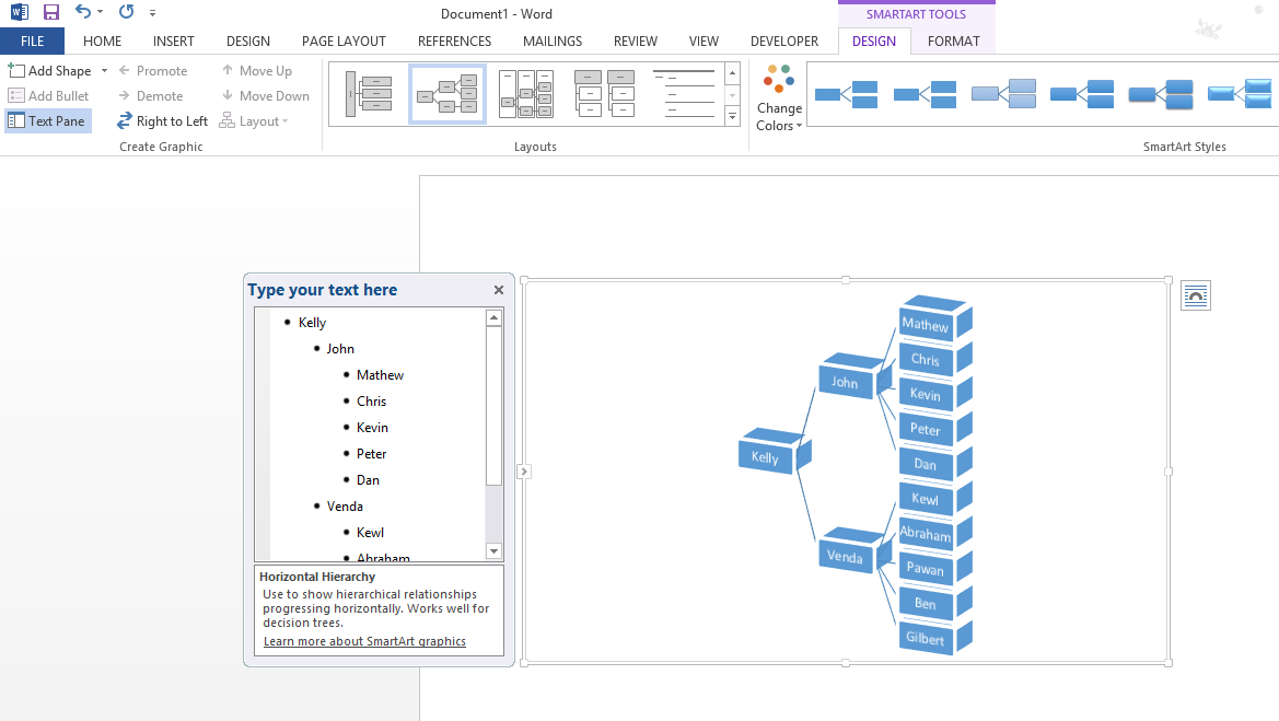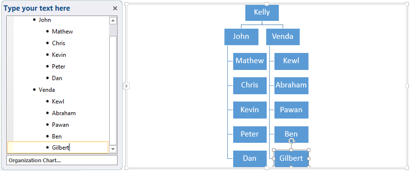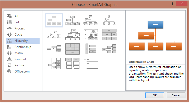 If you want to include a Hierarchical chart into your office documents (like Organization Chart) you have this feature called “SmartArt”.